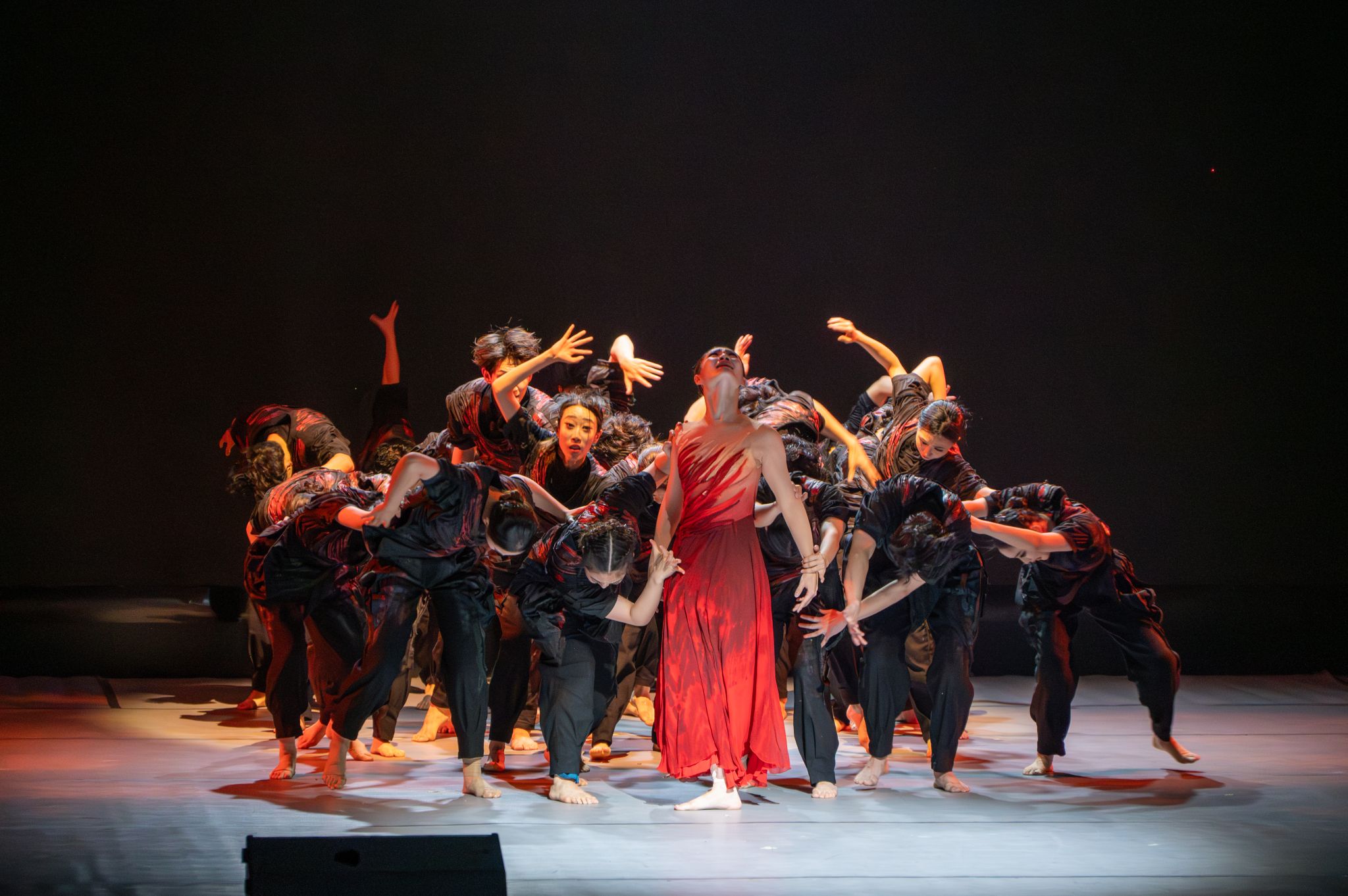 本场演出由东北师范大学音乐与舞蹈学院舞蹈系学生倾情演绎。作品《再望这片黑土地》借东北秧歌元素重塑“黑土”意象,以克制冷峻的舞蹈语言,将农耕符号与东北民众的生活图景凝练为深沉的生命咏叹。《中国妈妈》通过塑造一位东北母亲的形象,诠释了母爱的伟大与宽广,展现了中国女性从个人情感走向大爱境界的精神升华。《进城》生动刻画了普通劳动者在城市中奋斗奉献的群像,传递出对平凡个体的尊重与礼赞。《鸡毛信》以舞蹈语言再现红色经典,展现使命与信念的接力传承。《我们看见了鸿雁》融合蒙古舞与现代舞语汇,艺术化呈现“深扎”采风团的真实经历,弘扬了扎根生活、服务人民的创作精神。《远行》以纯粹身体语言探讨“放下”与“前行”的生命命题,折射出人生旅程中的离别、成长与希望。《出井记》通过描绘井底人的觉醒与突围,展现了一幅关于生命解放的壮丽图景。《人云亦云》以舞蹈语汇倡导独立思考的价值取向,引导观众在纷繁复杂中保持清醒认知。《桂梅的花园》深情致敬张桂梅老师“躬耕教坛、强国有我”的崇高精神,传递人民教师乐教爱生、甘于奉献的仁爱之心。压轴之作《河》则通过音乐与舞蹈的深度融合,以流动的肢体语言诠释河流意象背后的文化内涵与精神寄托。