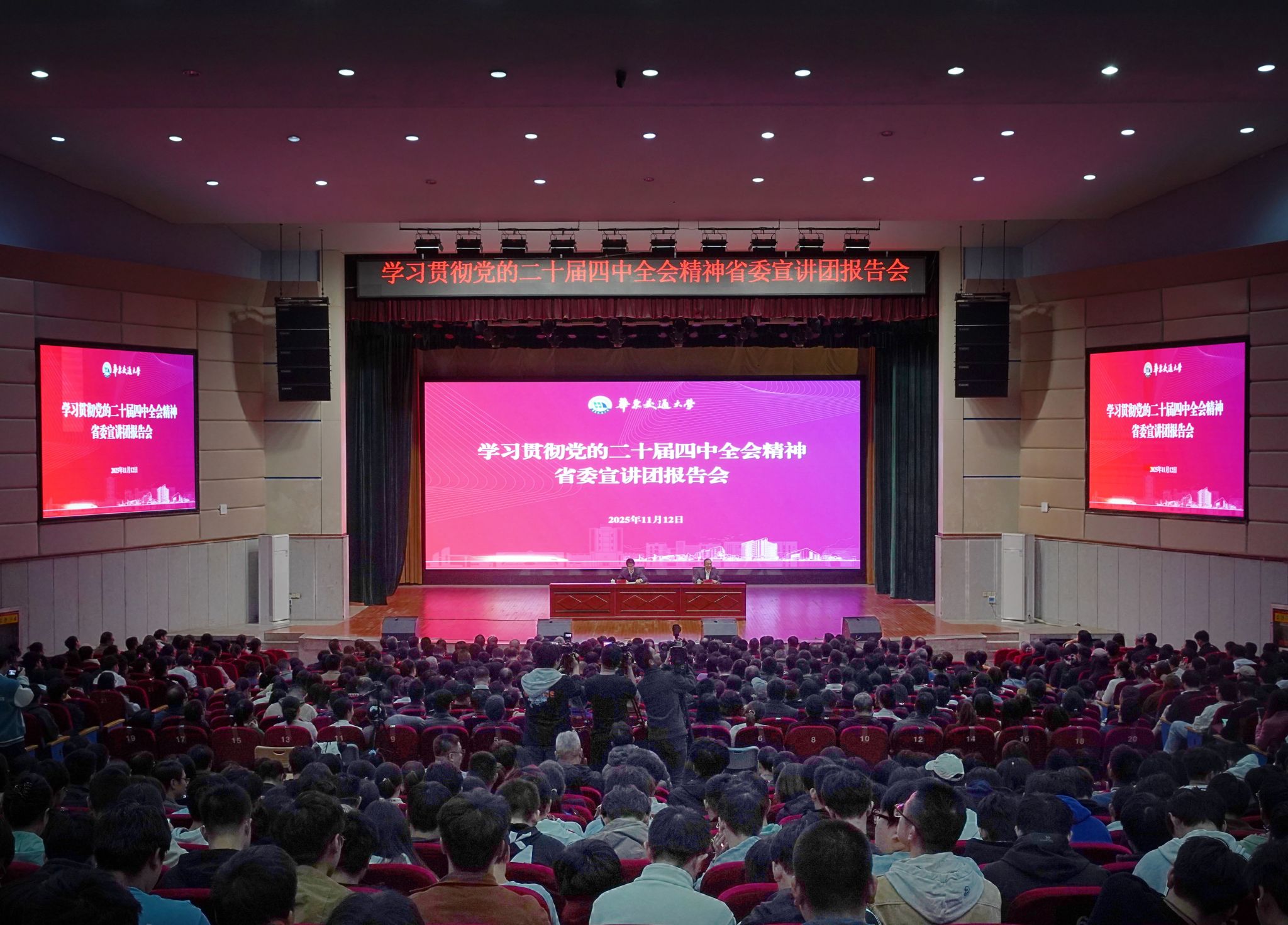 科级以上干部、党支部书记、思政课教师及学生代表1200余人现场聆听报告会。(马莉娅 摄)